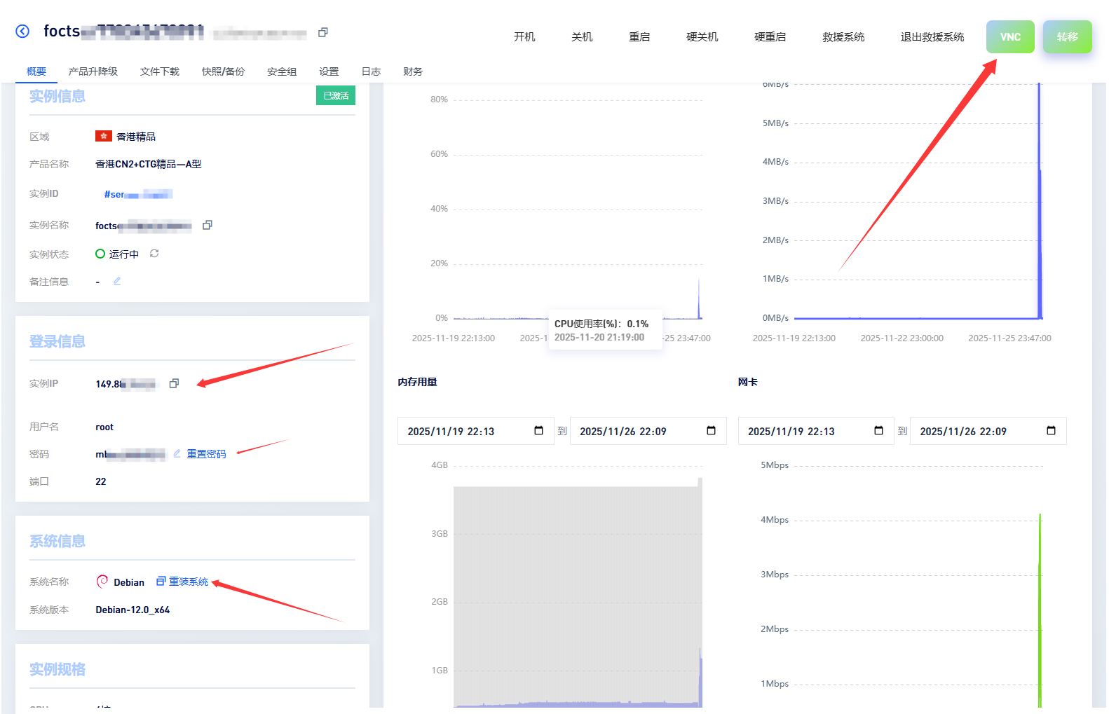 购买完成后,进入厂商后台(如魔方财务面板),找到对应的服务器并进入控制界面。